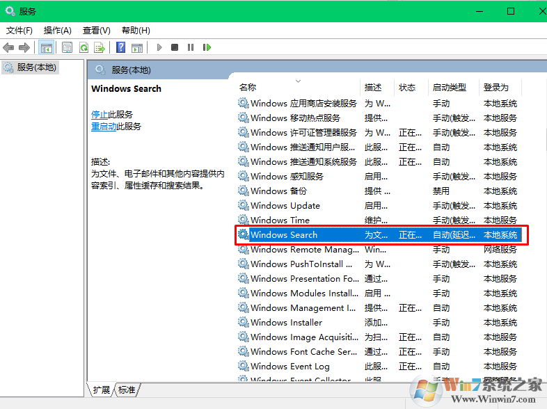 2、找到Windows search,右鍵單擊它,然后選擇屬性。