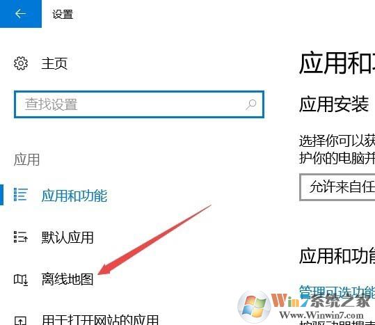 3、在打開的應(yīng)用窗口中,點擊左側(cè)邊欄的離線地圖菜單項