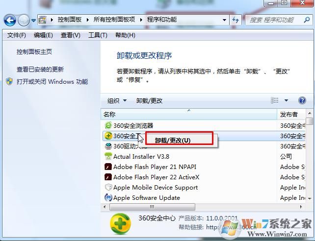 4、選擇360安全衛(wèi)士,右鍵點擊,然后選擇卸載;
