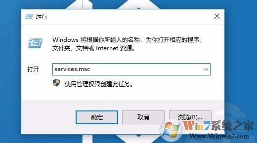 3、在打開的運(yùn)行窗口中輸入命令services.msc,然后點(diǎn)擊確定按鈕。