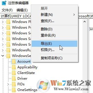 3、在Account上單擊右鍵,在彈出的菜單中點擊【導(dǎo)出】;