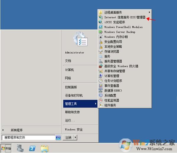 1. 單擊【開始】→【管理工具】→【Internet 信息服務(wù)(IIS)管理器】