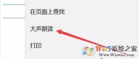 2、在Edge瀏覽器打開的下拉菜單中點擊“大聲朗讀”菜單項,如下圖所示:
