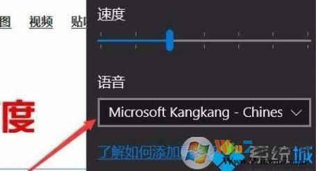 6、通過修改【語音】下拉菜單中的選項進行更換選項即可變換朗讀聲音。