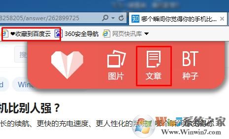 2、打開你要復(fù)制的文章地址,然后點(diǎn)擊收藏到百度云,在出現(xiàn)的三個(gè)項(xiàng)目中,點(diǎn)擊文章;