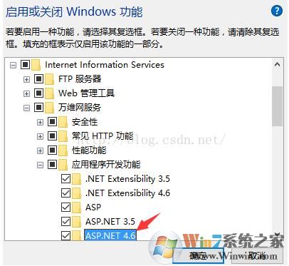 勾選應(yīng)用程序開發(fā)功能中的ASP.net 4.6 確定即可。