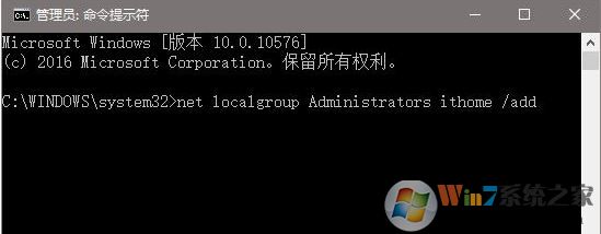 4、在管理員賬戶中,以管理員模式執(zhí)行如下命令:net localgroup Administrators 你的賬戶登錄名 /add