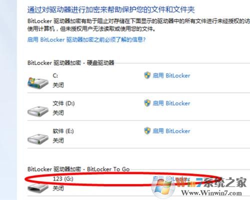 2、找到【Bitlocker驅(qū)動器加密】選項,打開它;找到移動設(shè)備,點后面的【啟用Bitlocker】;
