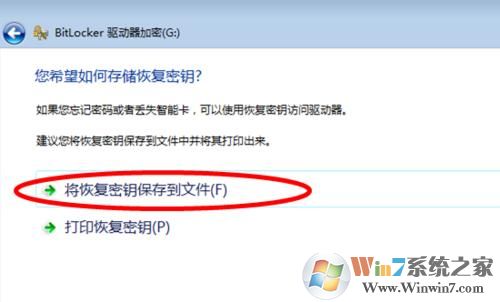 4、點擊【將恢復(fù)密鑰保存到文件】,選擇保存位置點“確定”即可。