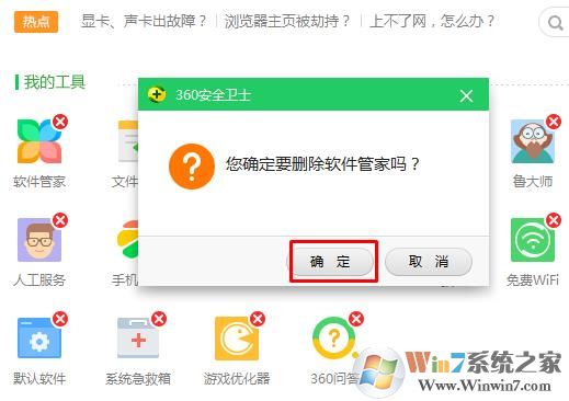 4、彈出確定刪除軟件管家嗎窗口,點(diǎn)擊是,確定刪除。