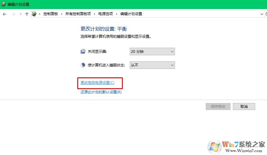 3、選擇更改高級電源設(shè)置。