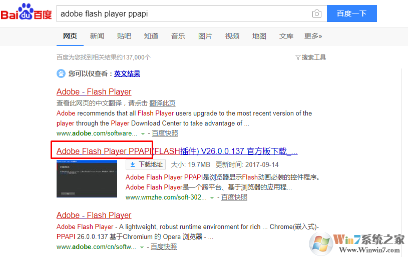 1、在百度搜索adobe flash player ppapi,進(jìn)入下載。注意一定要是ppapi版本的flash。