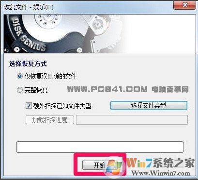 五、選擇好需要恢復(fù)的文件類型后,就可以點(diǎn)擊【開始】進(jìn)行文件數(shù)據(jù)恢復(fù)了。