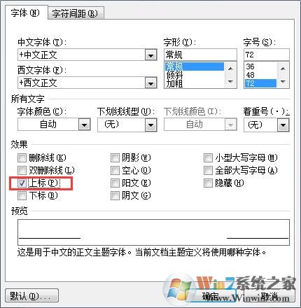 2、在彈出的字體界面 我們勾選 效果下面的【上標(biāo)】,點擊確定即可!