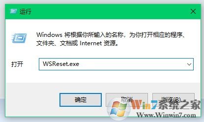 2、在運行窗口中,鍵入 WSReset.exe并點擊“ 確定 ” 按鈕;