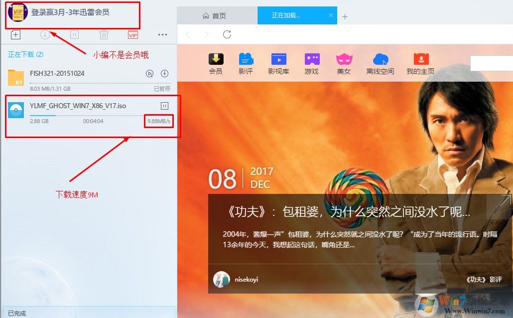下面是效果圖,迅雷9的下載速度滿速10M,注意小編不是會員哦。