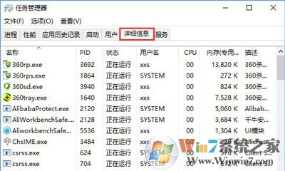2、打開任務(wù)管理器后,切換到【詳細信息】選卡;