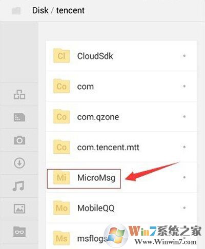 3、點擊打開,再找到“MicroMsg”這個文件夾。