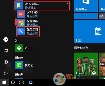 1、點擊開始菜單,找到WPS Office,選中WPS Office中的配置工具,如圖: