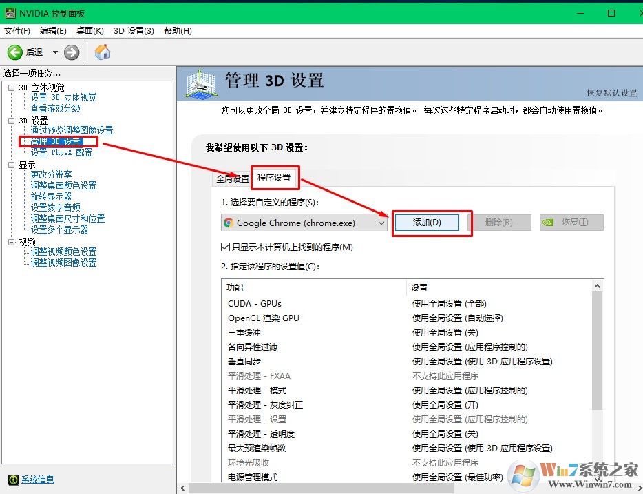二、將出現(xiàn)該錯誤的程序添加到NVIDIA 3D設(shè)置中。