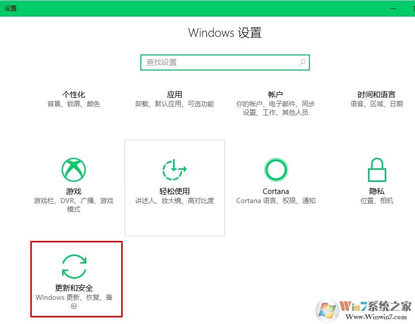 1、win+i打開設(shè)置,找到更新跟安全點(diǎn)擊進(jìn)入。