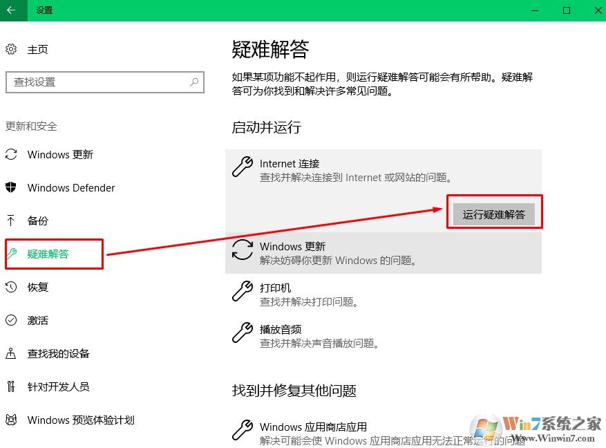 2、左側(cè)懸著疑難解答,在右側(cè)找到Internet 連接點(diǎn)擊之后會出現(xiàn)疑難解答按鈕,點(diǎn)擊疑難解答按照提示操作即可。
