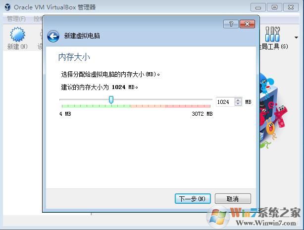 3、設(shè)定內(nèi)存大小,win7 32位1G以上,如果是64位那么2G以上;Win7系統(tǒng)之家 cncxm.com
