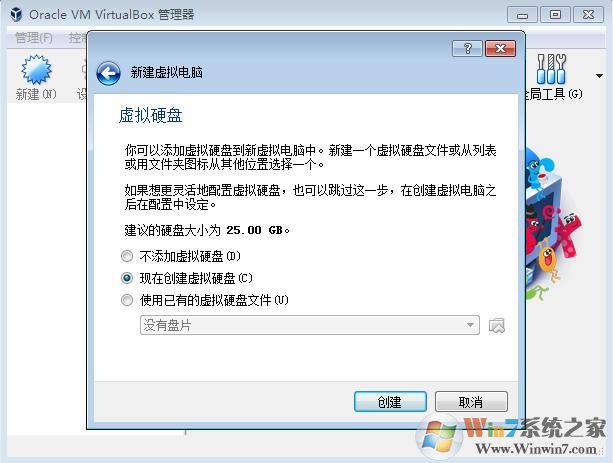 4、創(chuàng)建虛擬硬盤的大小,安裝Win7建議有25G以上的空間,具體視自己的需要而定;