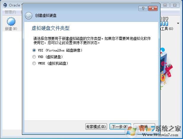 5、硬盤文件類型選擇VDI 是VBOX專用的,如果想要別有虛擬機軟件支持,可以選擇VHD(微軟虛擬硬盤格式),VMDK(VMware兼容格式)