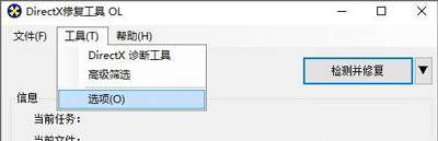 3、DirectX修復(fù)工具 ,然后在工具欄中點擊【工具】--【選項】按鈕;