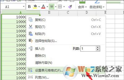 2、單機右鍵,選擇“設(shè)置單元格格式”。