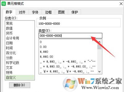 4、在右邊的“類型框”中輸入“000-0000-0000”即可。