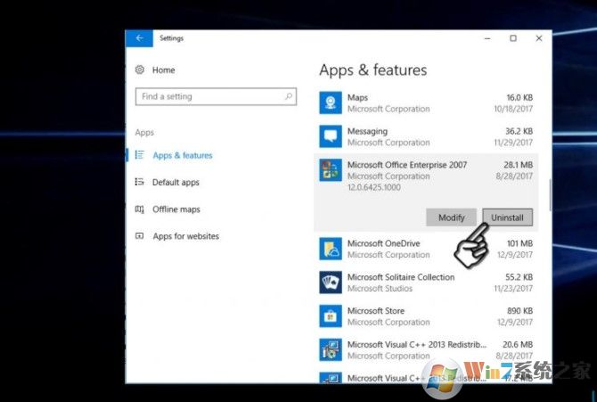 3、找到Microsoft Office條目,單擊它,然后選擇卸載。