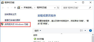 2、在程序和功能界面左側(cè)點擊【啟用或關(guān)閉Windows 功能】;