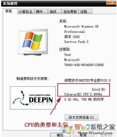 單擊“我的電腦”(或計(jì)算機(jī))→“屬性”就可以查看CPU類型和主頻大小 如下圖:Win7系統(tǒng)之家 cncxm.com