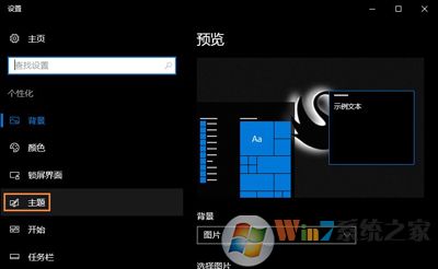 2、然后會自動跳轉到Win10系統(tǒng)的“設置-背景”對話框,這里我們稍作調整,切換到第四行的“主題”。
