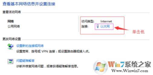 ②.打開“網(wǎng)絡和共享中心”后找到自己正在使用的連接,有些同學是以太網(wǎng),有些同學是本地鏈接,反正是正在使用網(wǎng)絡的那一個。