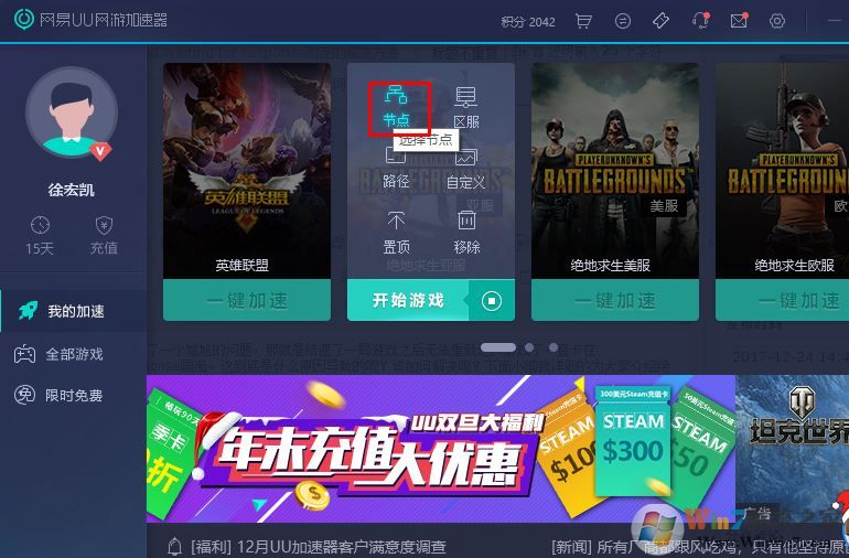 1、打開網(wǎng)易uu,點擊游戲加速界面選擇節(jié)點。