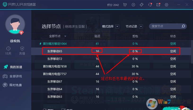 2、選擇延遲和丟包率最低的節(jié)點,然后雙擊確認(rèn)該節(jié)點即可。