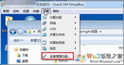 1、在虛擬機中點擊設(shè)備—安裝增強功能;