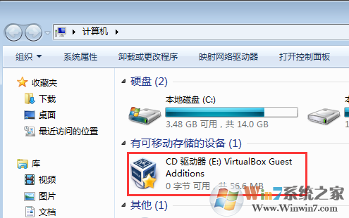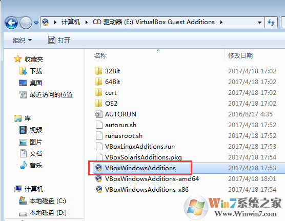 4、然后在虛擬機的光驅(qū)中雙擊安裝,或是打開運行:VboxWindowsAdditions.exe