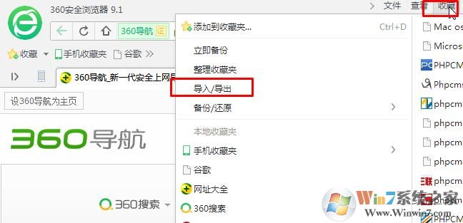 1、打開360瀏覽器,點(diǎn)擊收藏夾——【導(dǎo)入\導(dǎo)出】