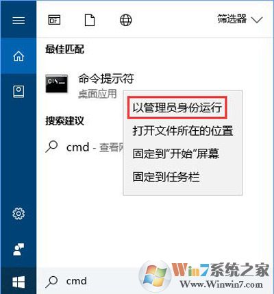 1、以管理員身份運(yùn)行cmd,打開小娜搜索 cmd ,在命令提示符上單擊右鍵選擇【以管理員身份運(yùn)行】;