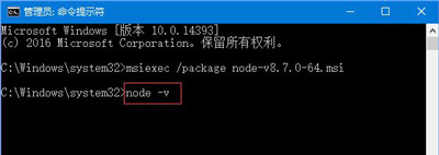 2、用msiexec安裝nodejs,輸入如下命令后按下回車鍵執(zhí)行: