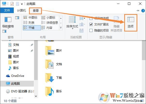 2、我們打開(kāi)“此電腦”→ 單擊“查看”,選擇”選項(xiàng)”。