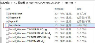 其中核心文件為“sources”文件夾中的“install.wim”文件。