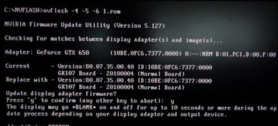 然后要刷新顯卡BIOS,輸入:nvflash -4 -5 -6 50754789bcad0.rom 回車(50754789bcad0.rom為ROM名字,也可以在之前就將其改名為非常簡單的名字,如1.rom)注意,50754789bcad0.rom為下載下來的BIOS文件名字。