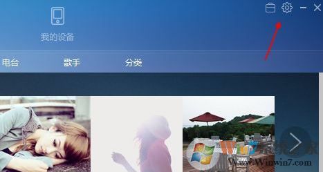 2、來到百度音樂的主頁面上來,在右側(cè)上邊找到一個(gè)小齒輪的圖標(biāo),這是系統(tǒng)設(shè)置的選項(xiàng),如圖所示: