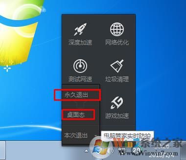 右鍵點(diǎn)擊圖標(biāo),然后點(diǎn)擊“退出”邊上的小箭頭,選擇永久退出、桌面態(tài)就可以了。