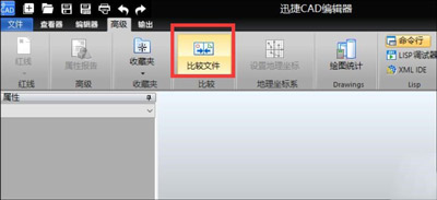 3、對于兩個相似但不同的CAD文檔的對比,我們可以切換到“高級”選項卡,點擊“對比文件”按鈕。